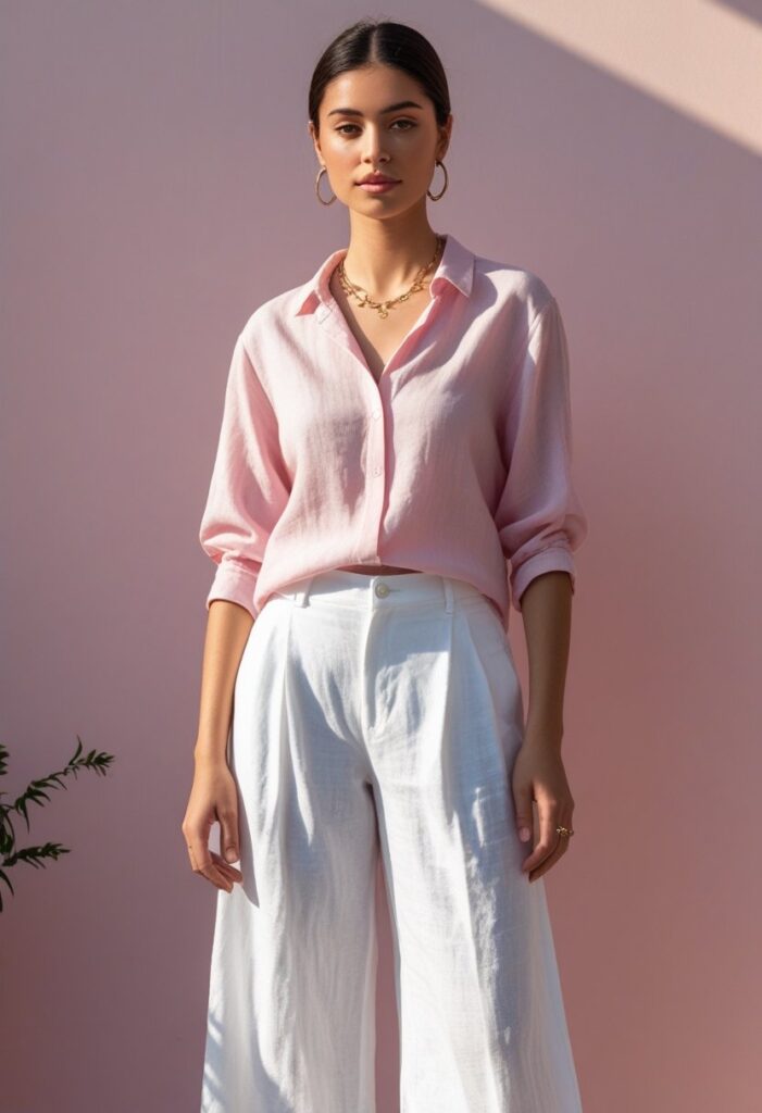 Footwear Ideas: Heeled mules, strappy sandals, or loafers create the perfect smart-casual foundation.