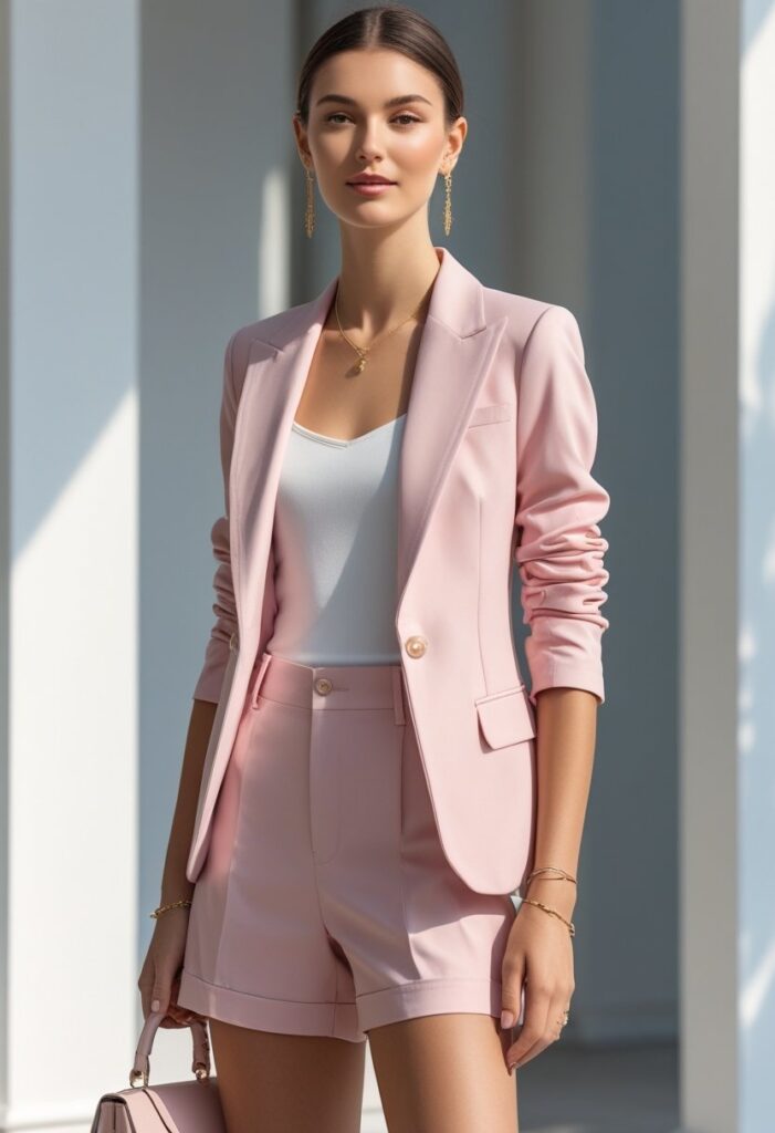 - Keep proportions balanced—if shorts are loose, the blazer should be fitted, and vice versa