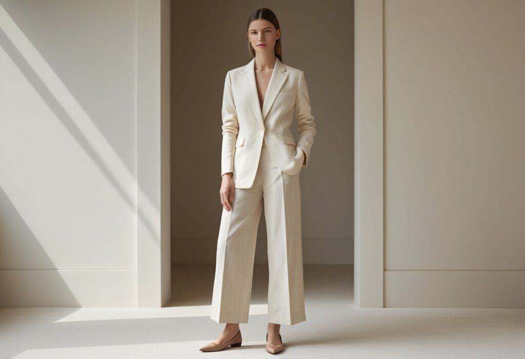 Accessories: Minimal gold jewelry, a structured leather bag, and a quality watch. This is quiet luxury at its finest.