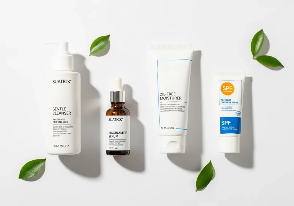 Morning: Gentle cleanser → Niacinamide serum → Oil-free moisturizer → SPF