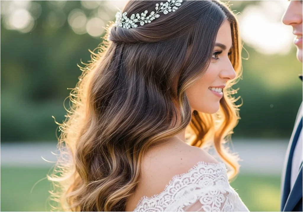 Loose waves paired with pearl pins or gold clips are trending strongly. This style looks effortless but takes careful preparation. It suits most face shapes and hair types.