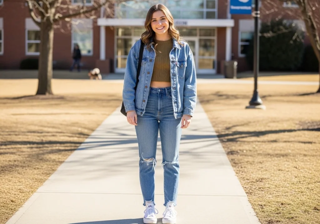 College outfit inspo balances comfort with style. Wide-leg jeans, a graphic tee, and a zip-up hoodie make a clean campus look. Add clean sneakers and a backpack. For a more put-together approach, try tailored trousers, a fitted knit top, and loafers. Both looks feel current and practical.