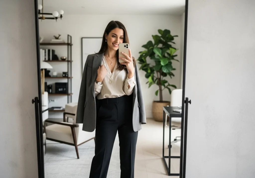 Step 6: Final Outfit Check Stand in front of a full-length mirror. Check proportions. If the top is oversized, the bottom should be fitted. If the bottom is wide, the top should be tucked and structured. Balance makes the outfit look polished rather than accidental.